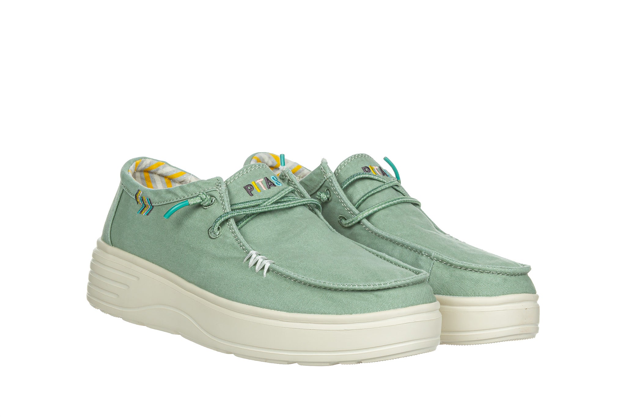 Półbuty marki Walk In Pitas z materiału w kolorze zielonym.