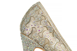 Buty są lekkie, wygodne i pięknie prezentują się na nodze. Szpilki w całości pokryte są pięknie mieniącymi się kamyczkami. Kolory zmieniają się pod wpływem światła. Cholewka częściowo wykonana jest z przezroczystej złotej siateczki. Dzięki wąskim noskom do szpica niezwykle zgrabnie prezentują się na nogach. Zapiętek od wewnętrzej strony obity jest miękkim w dotyku materiałem imitującym zamsz, który jest bardzo przyjemny i komfortowy dla stopy.