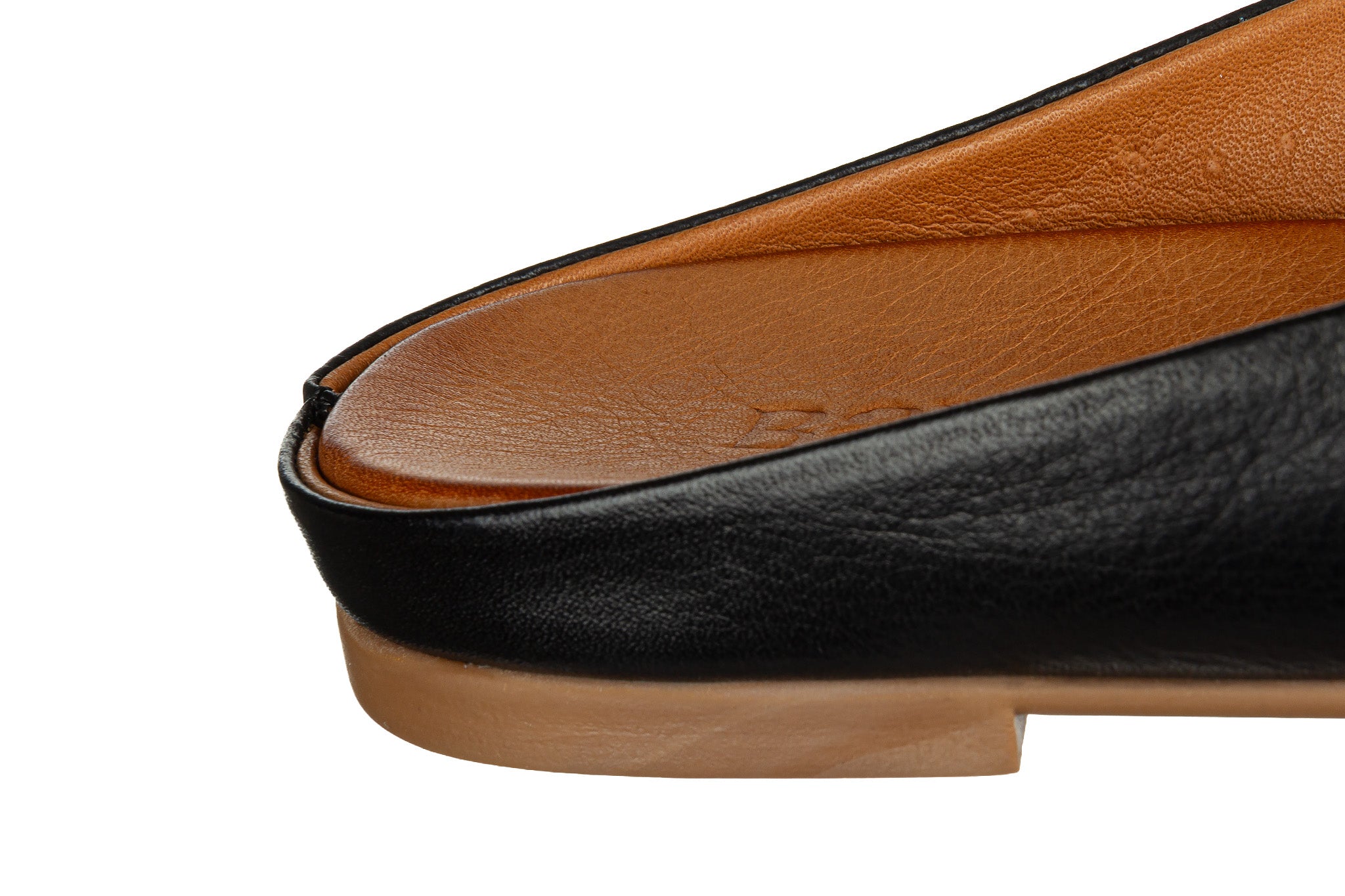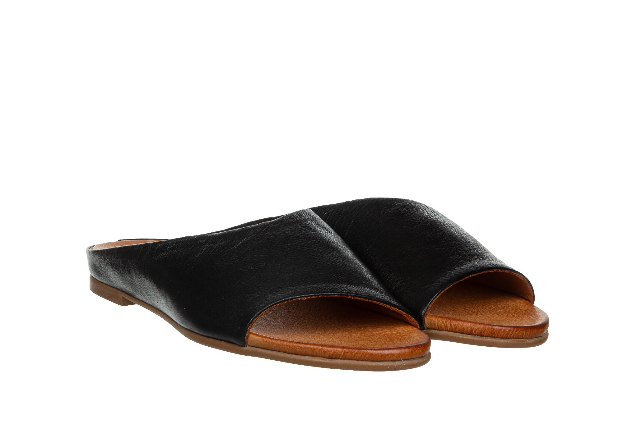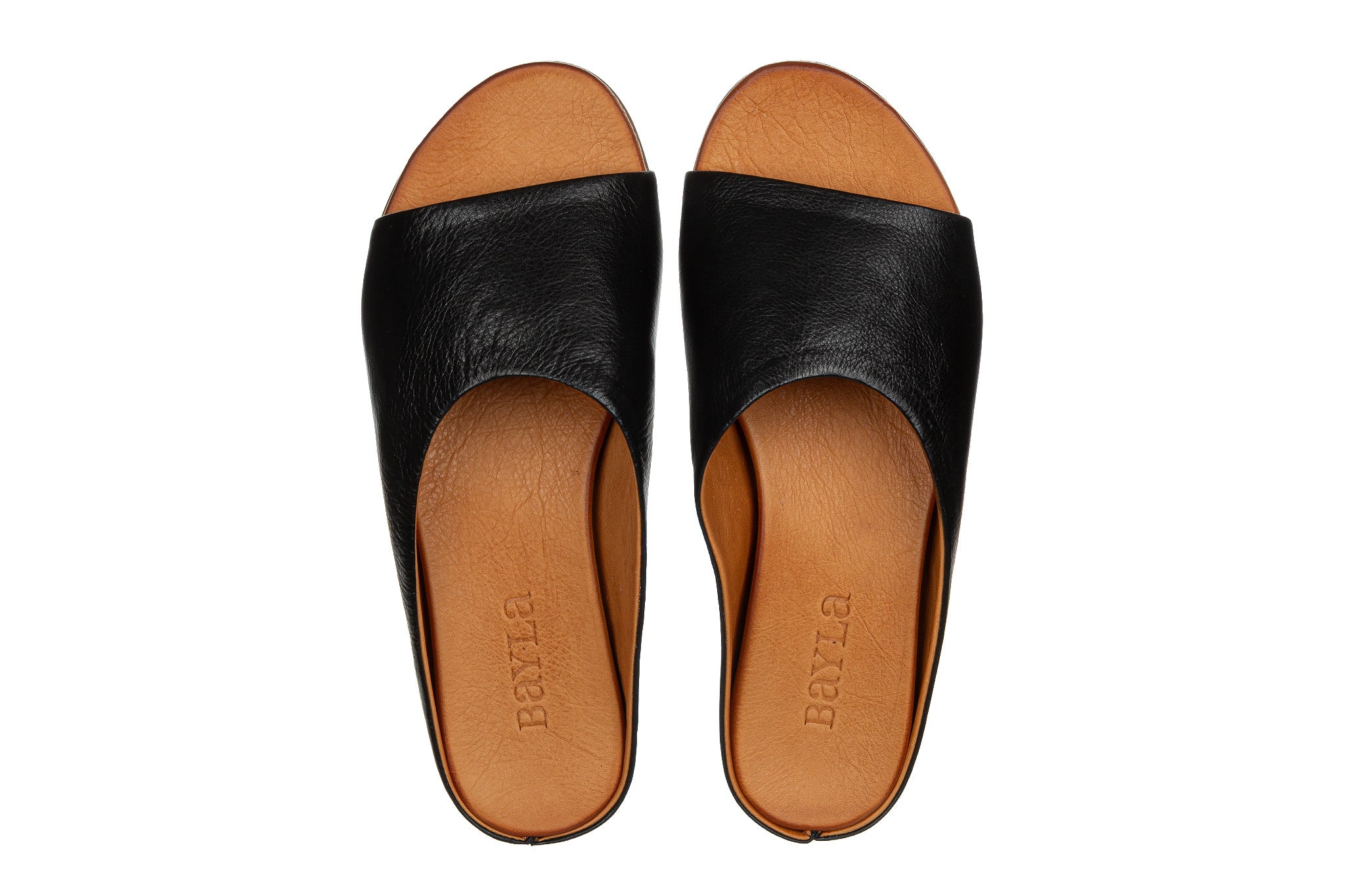 Klapki wykonane z miękkiej skóry naturalnej z delikatnie zabudowaną cholewką z opływowym wykończeniem.