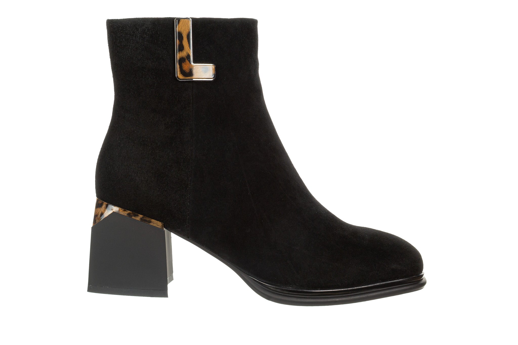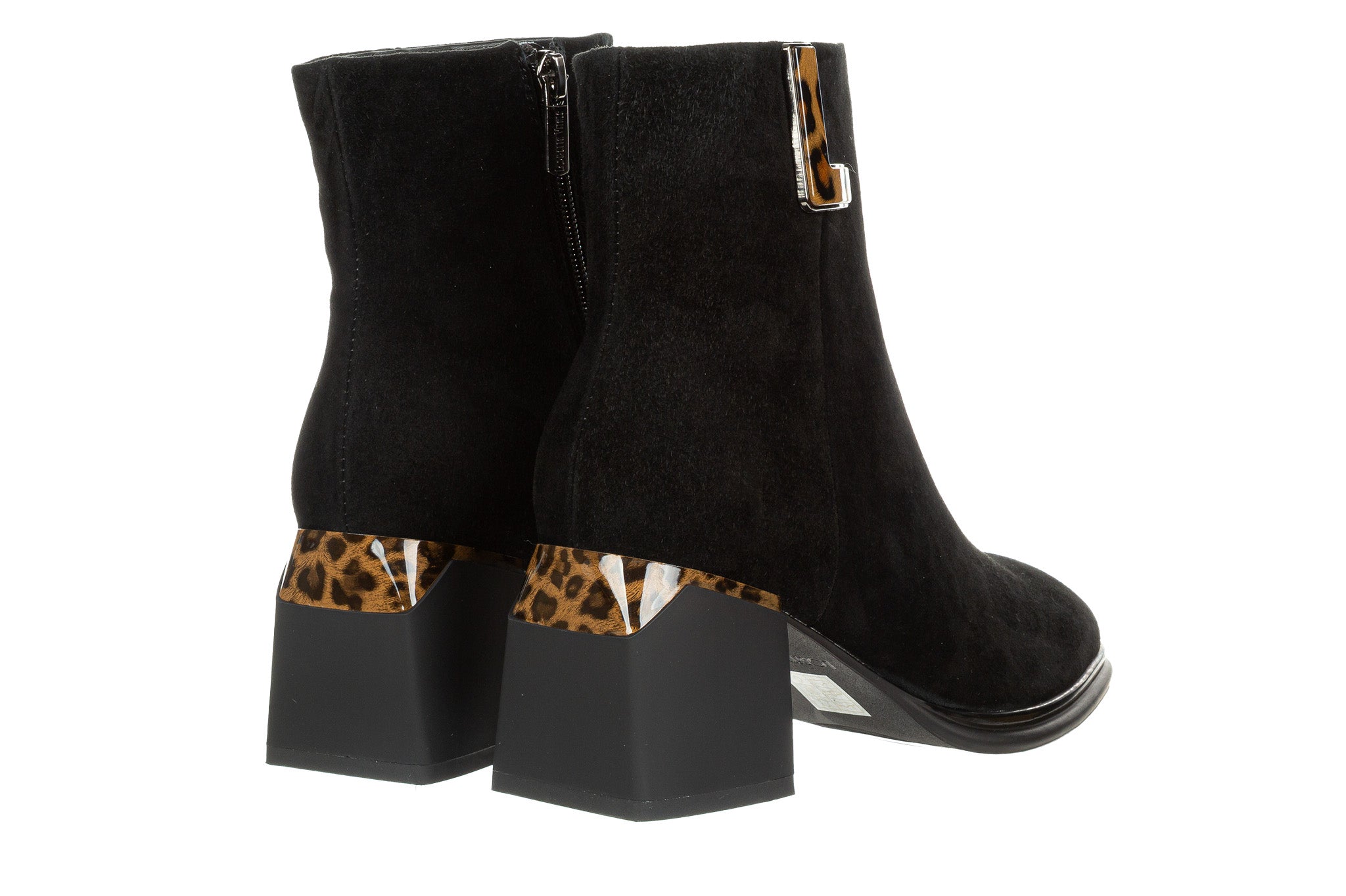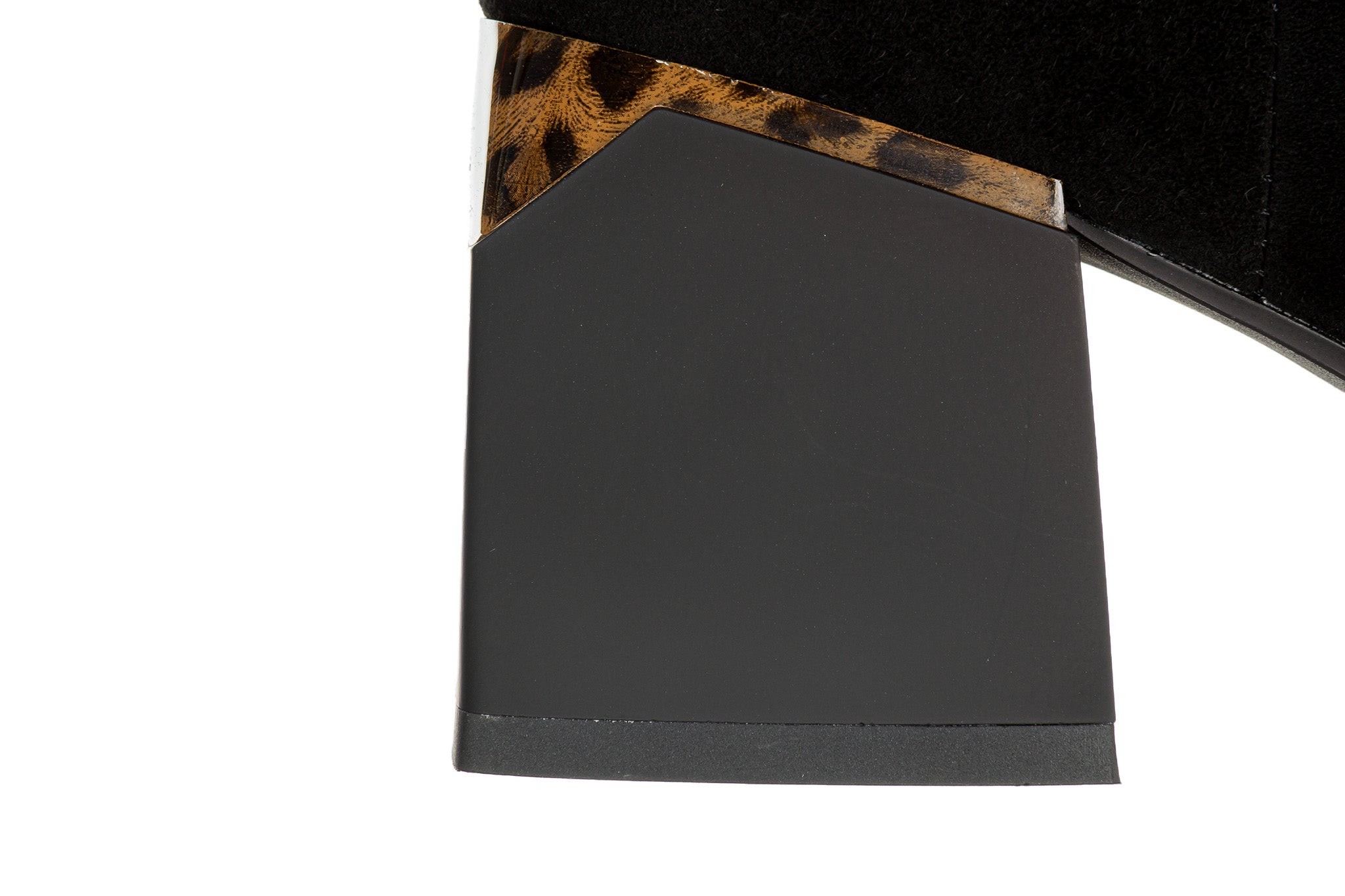 Cholewka z miękkiej skóry naturalnej zamszowej z ozdobnymi elementami w panterkę.
