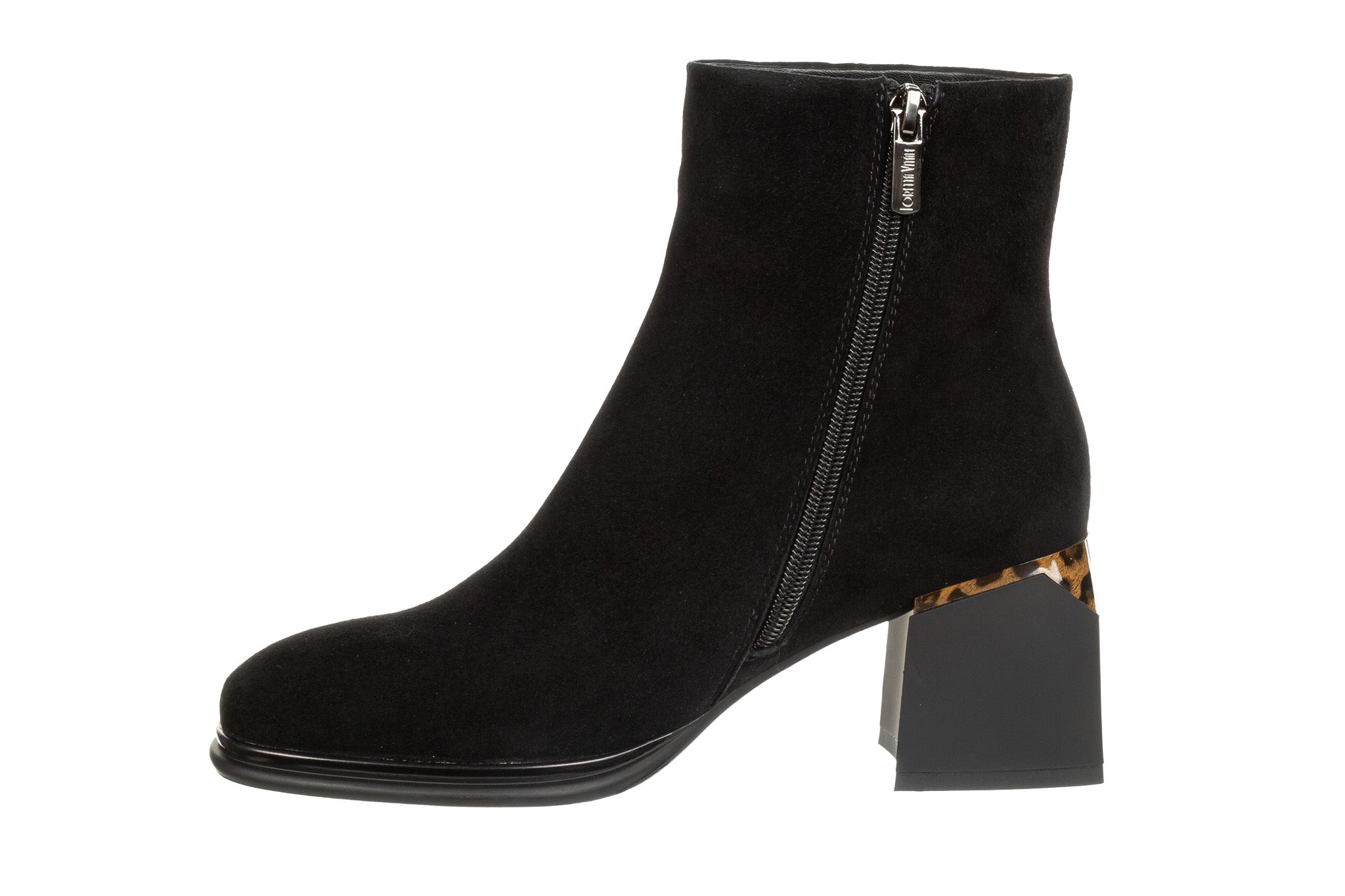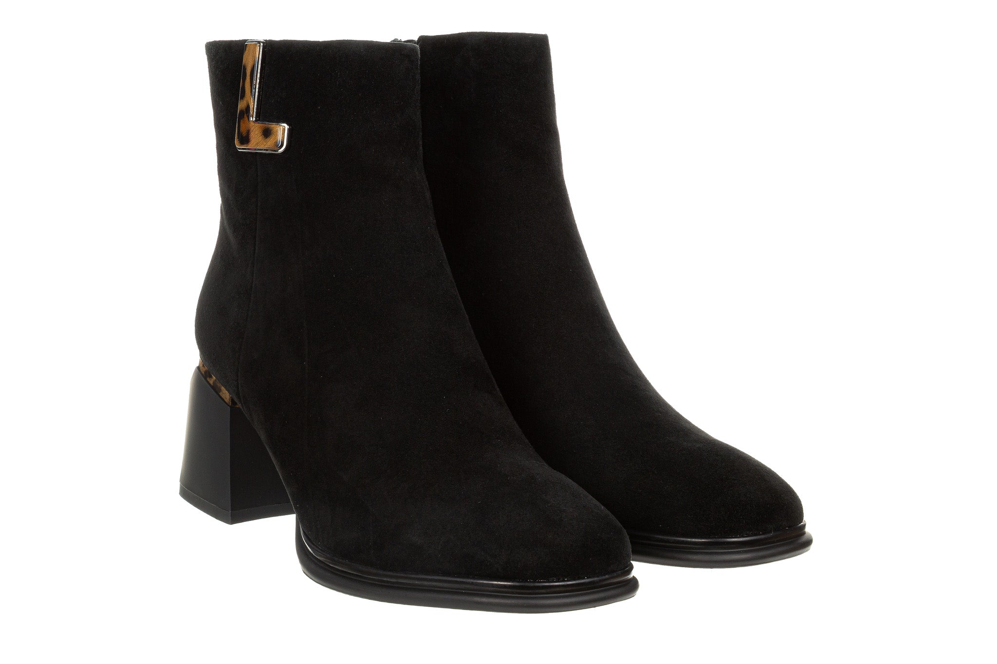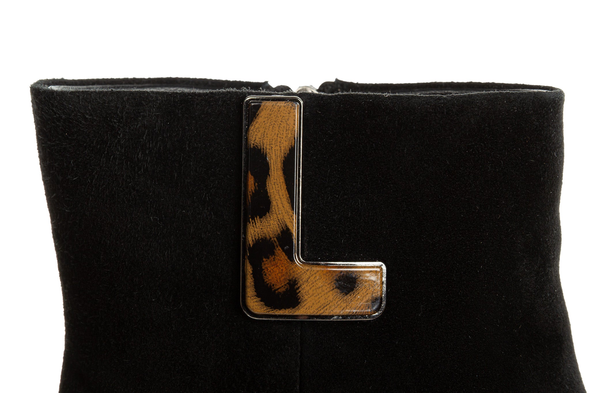 Cholewka z miękkiej skóry naturalnej zamszowej z ozdobnymi elementami w panterkę.