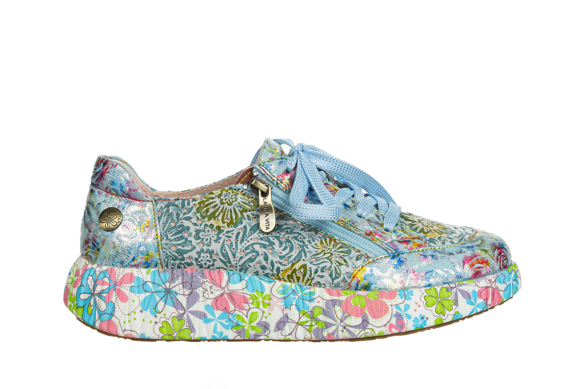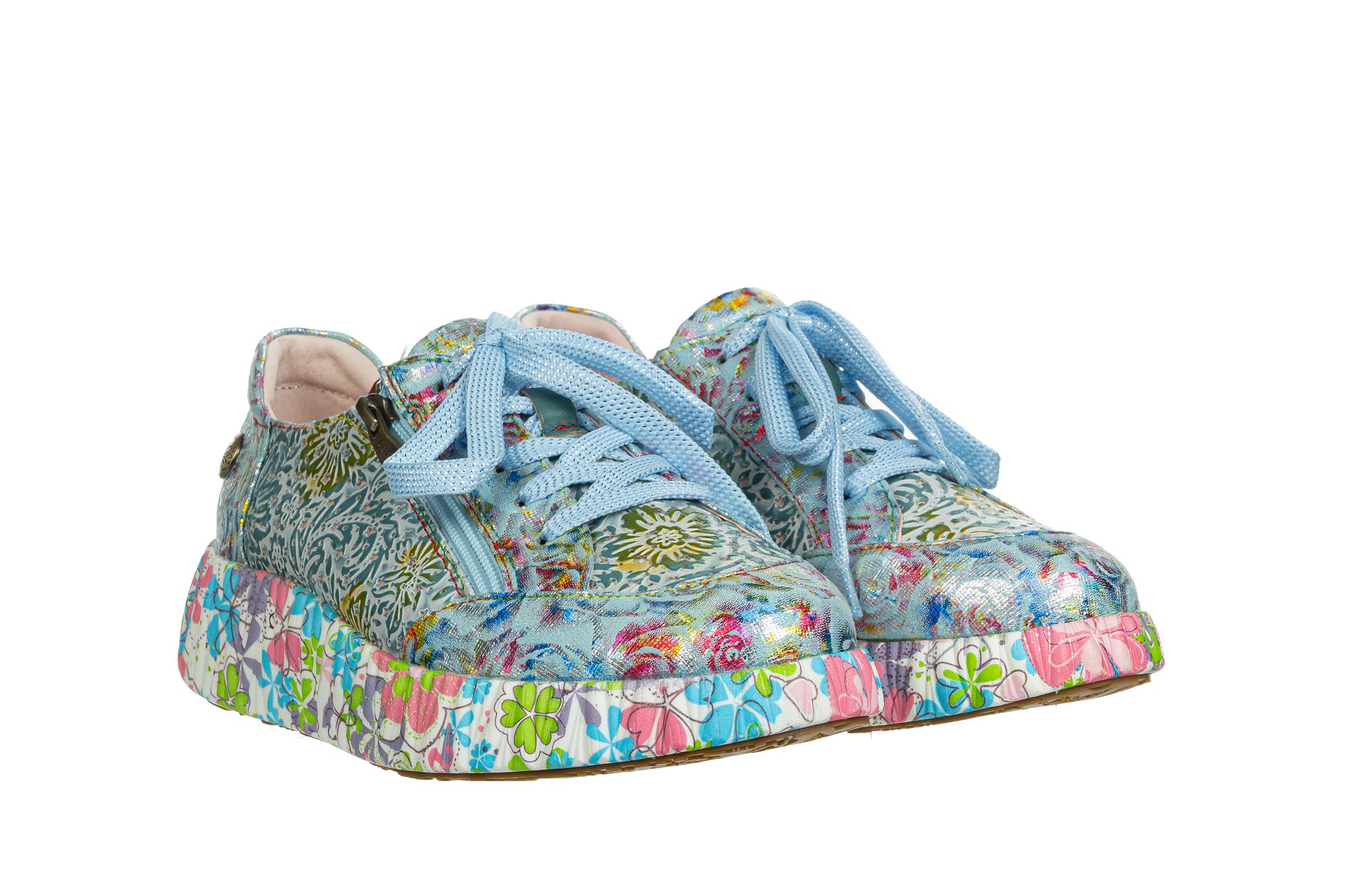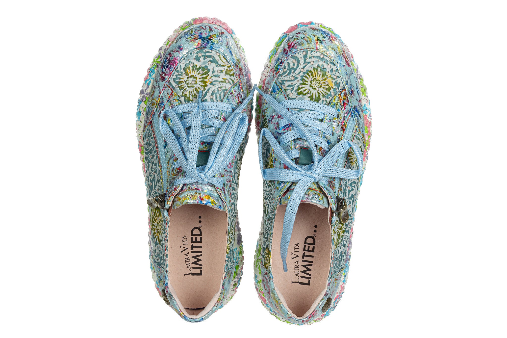 Sneakersy marki Laura Vita w kolorze niebieskim z wielokolorowymi akcentami.