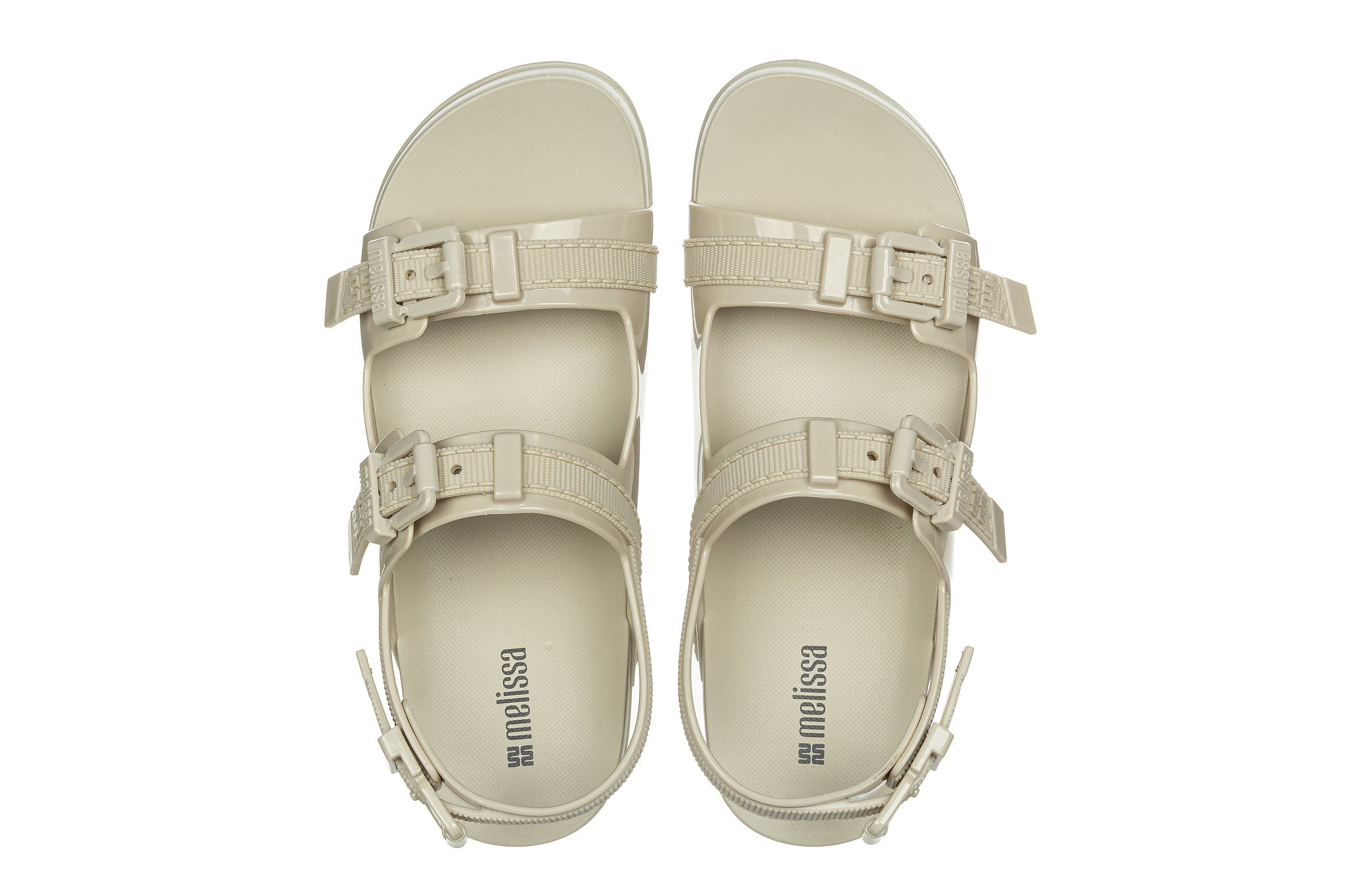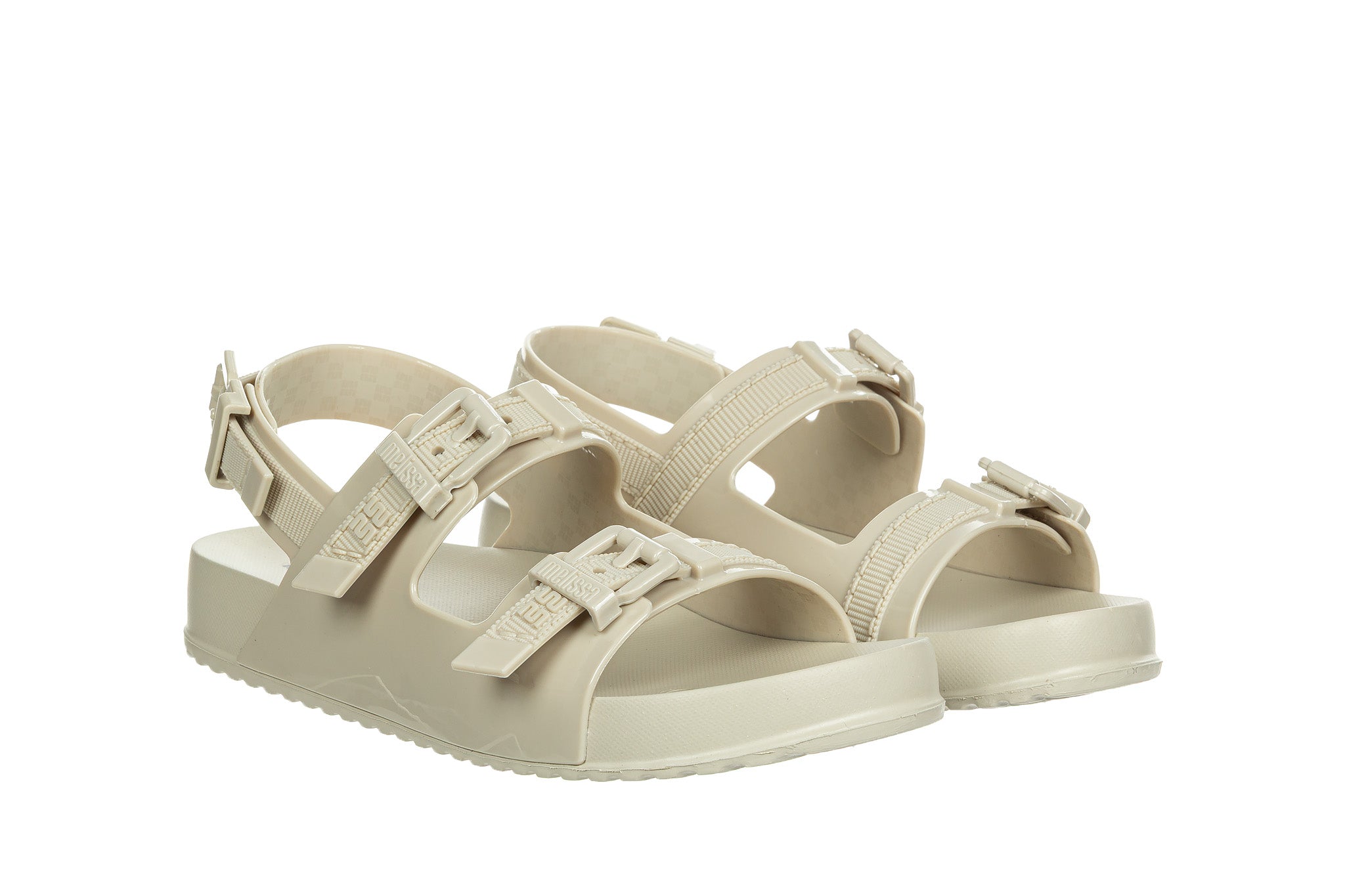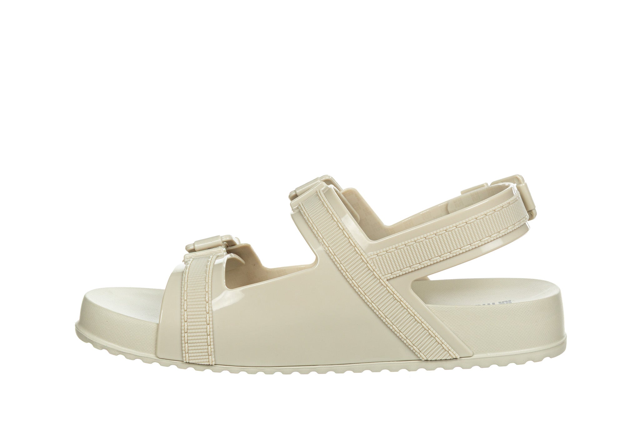 Sandały brazylijskiej marki Melissa w kolorze beżowym.