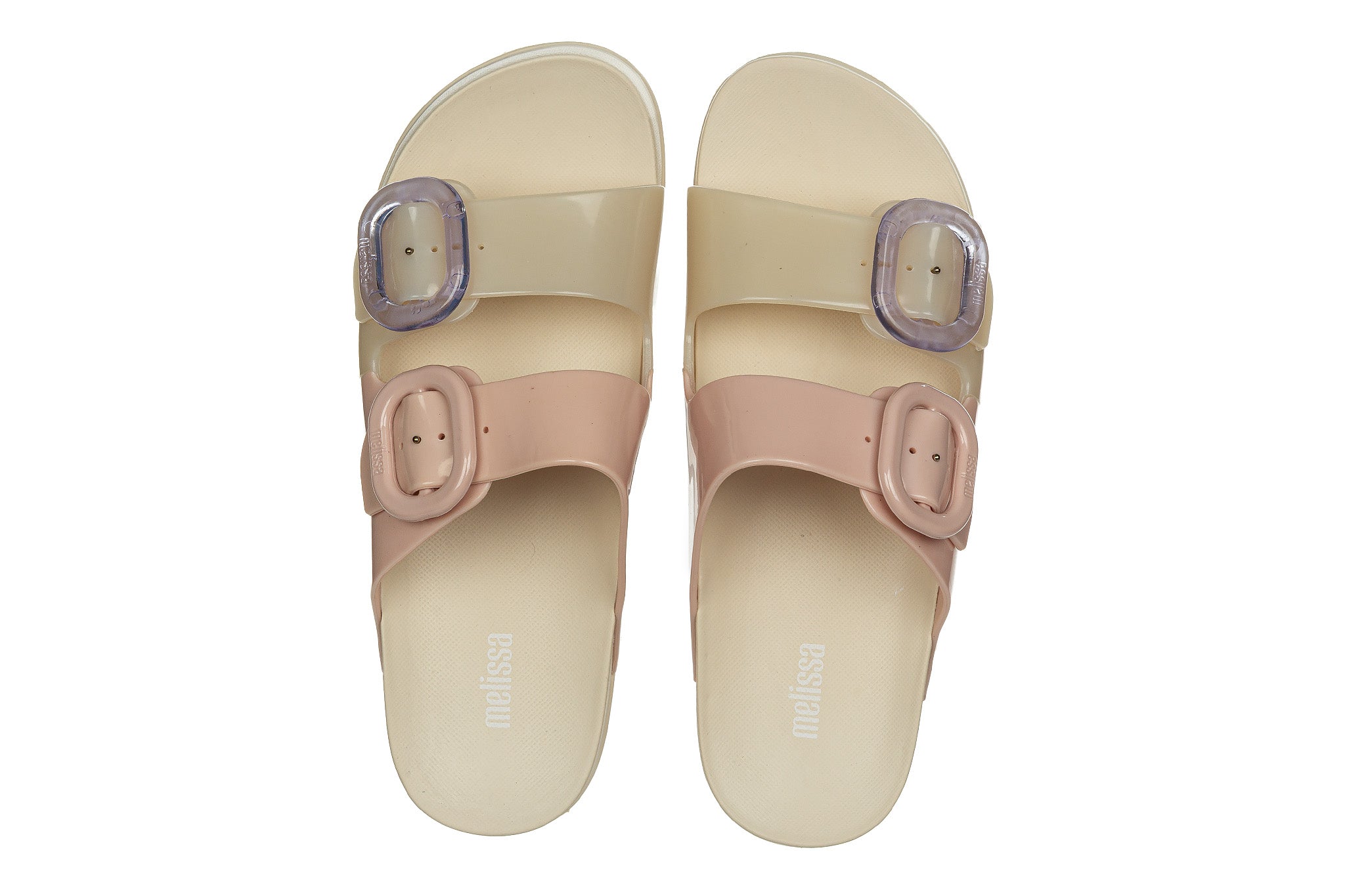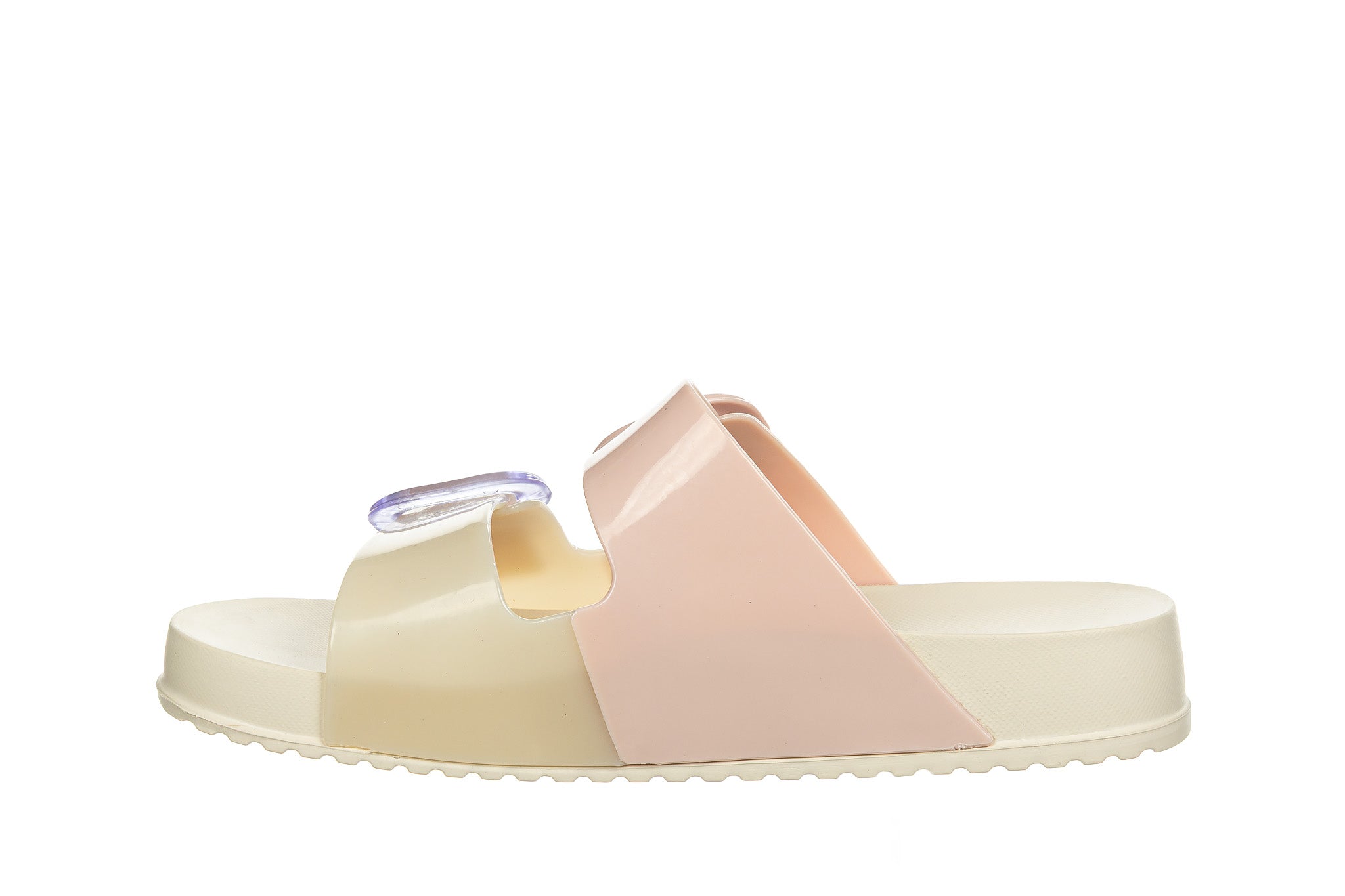 Klapki brazylijskiej marki Melissa w kolorze beżowo różowym