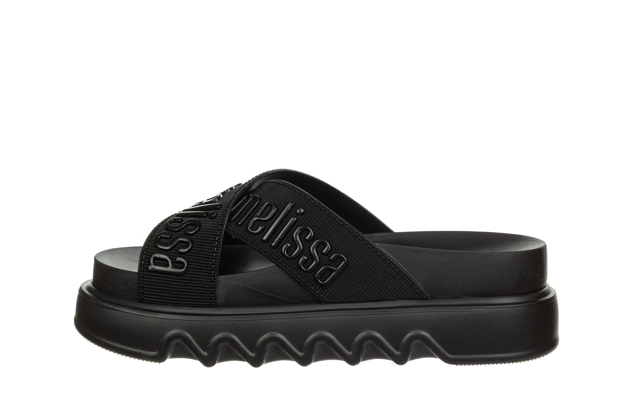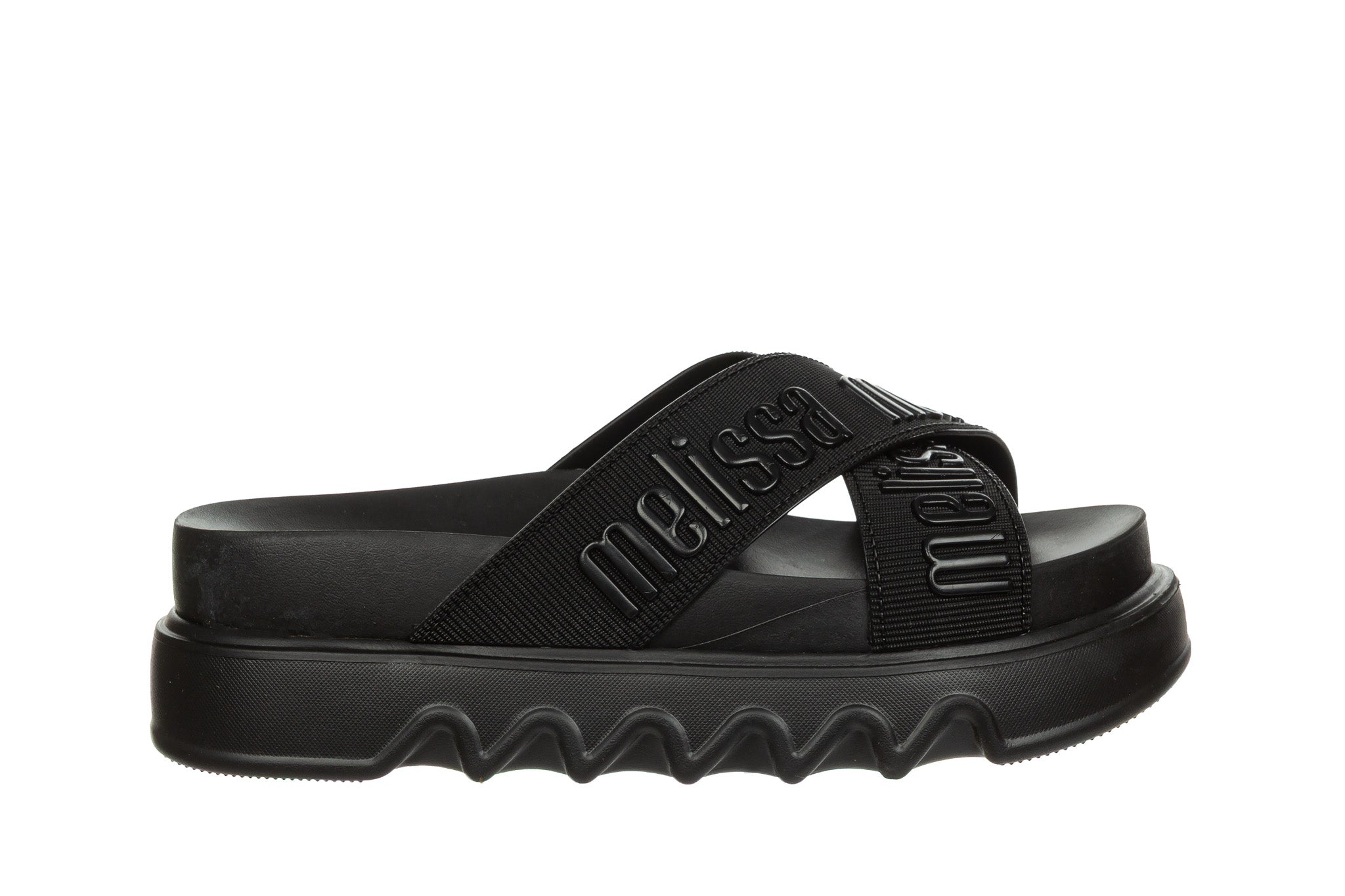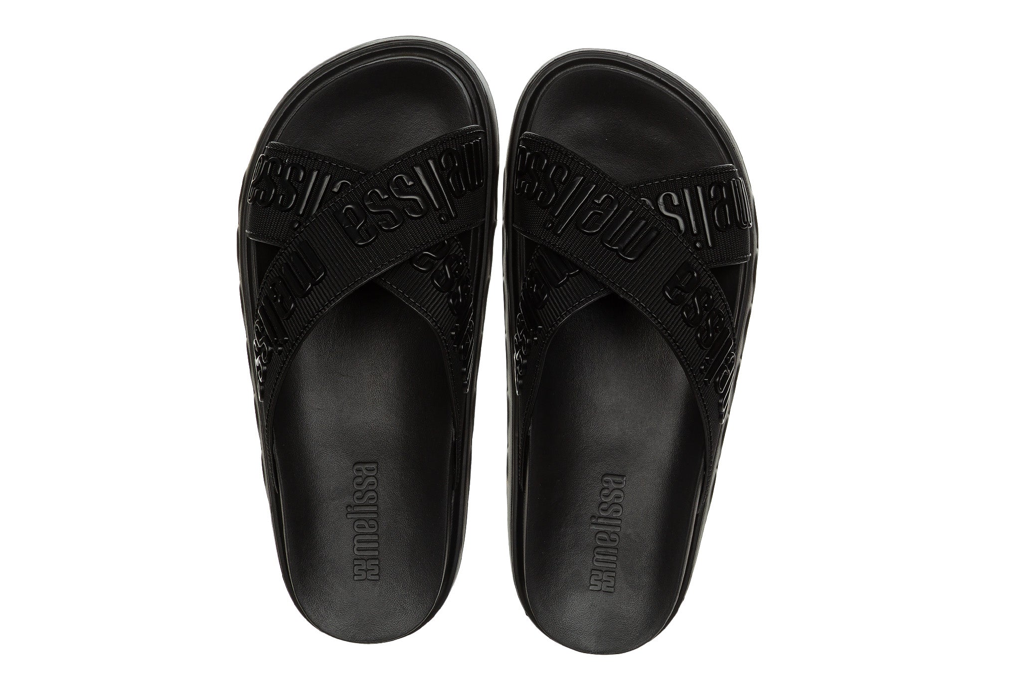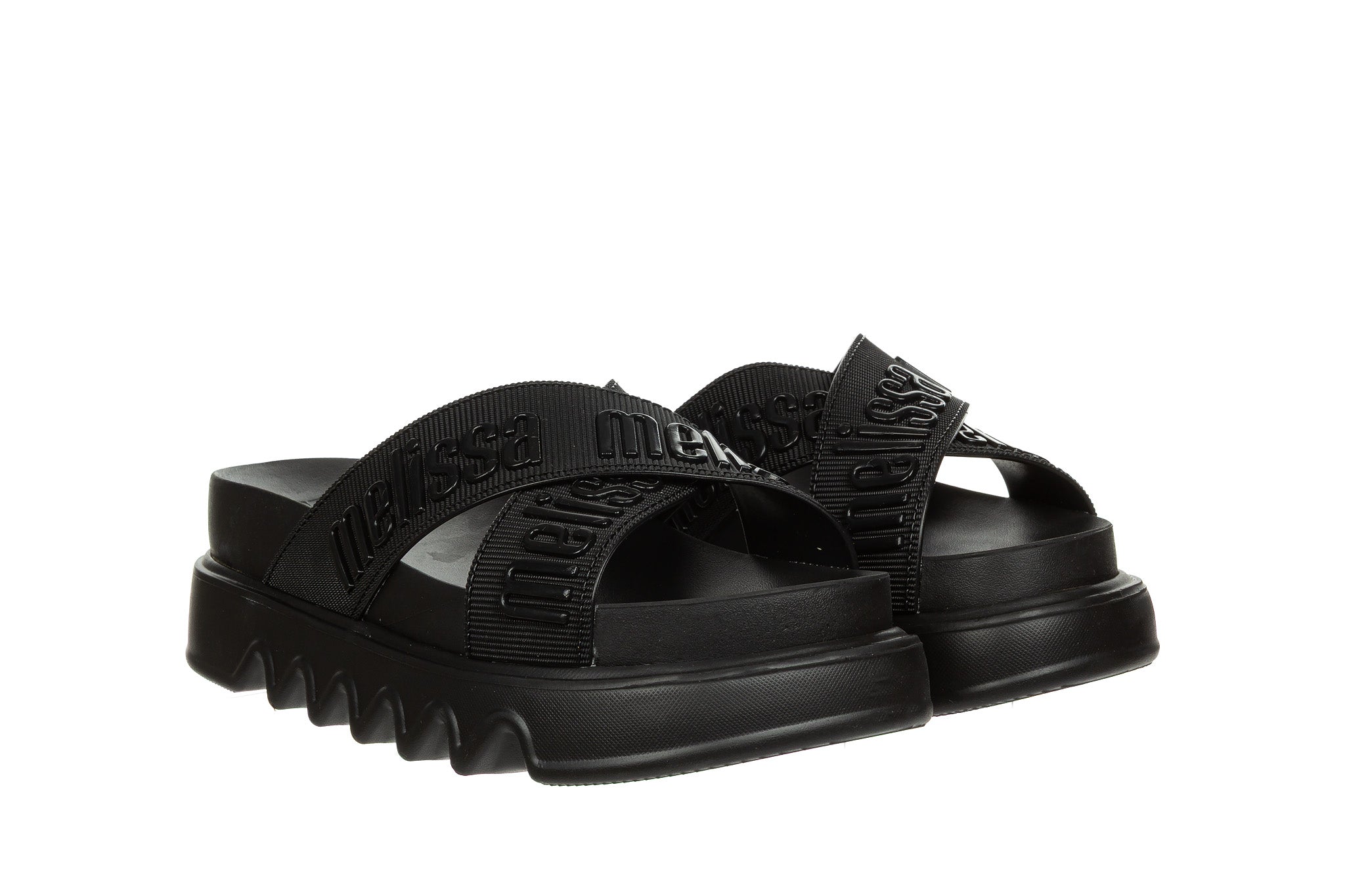 Klapki brazylijskiej marki Melissa w kolorze czarnym.
