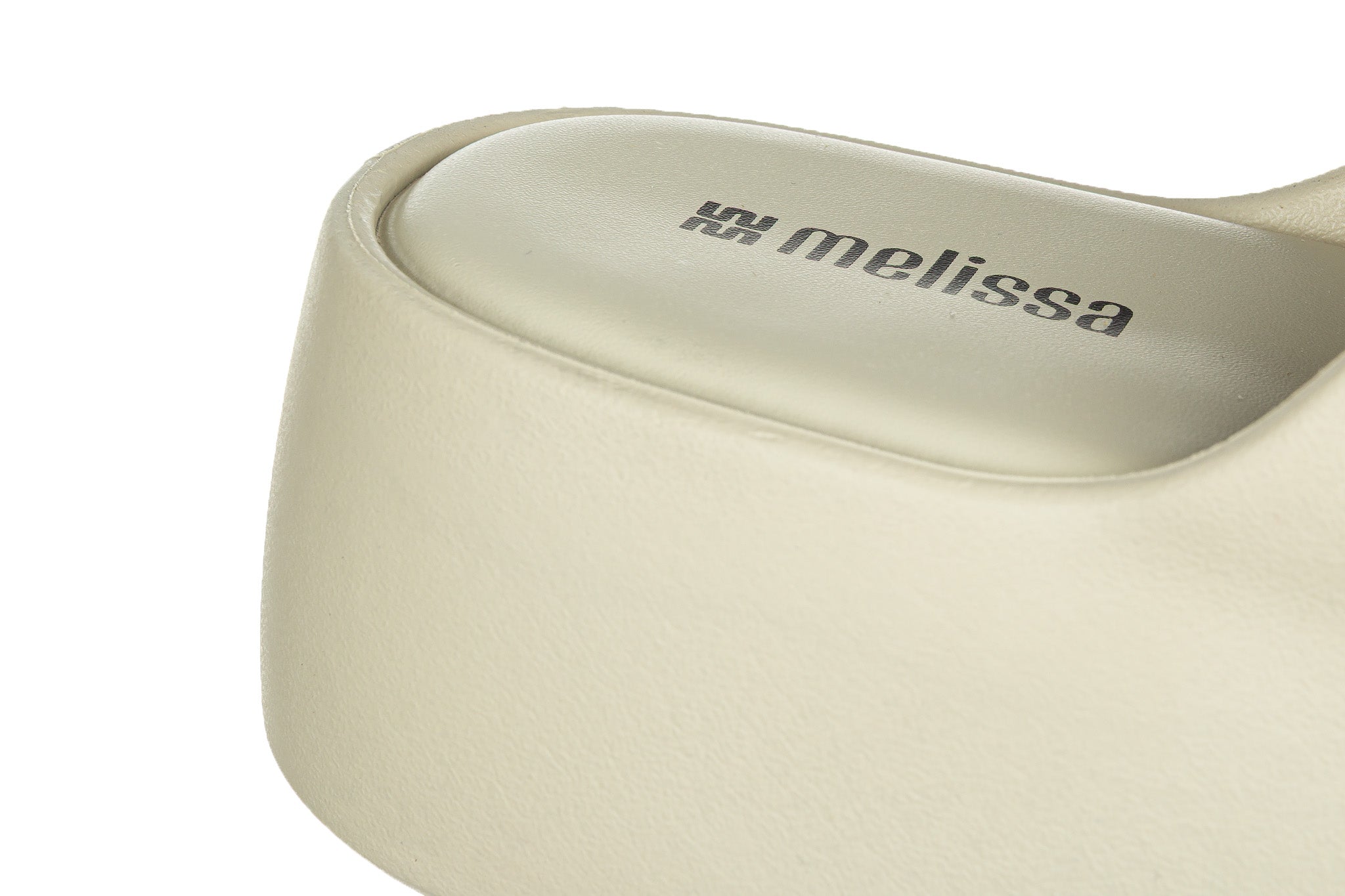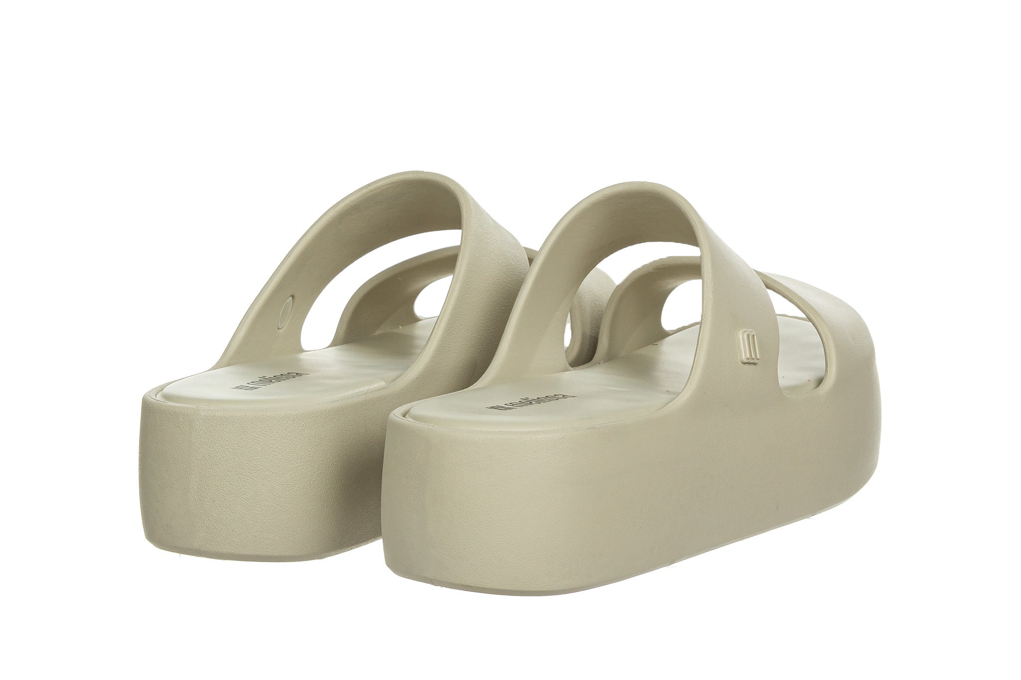 Klapki brazylijskiej marki Melissa w kolorze beżowym.