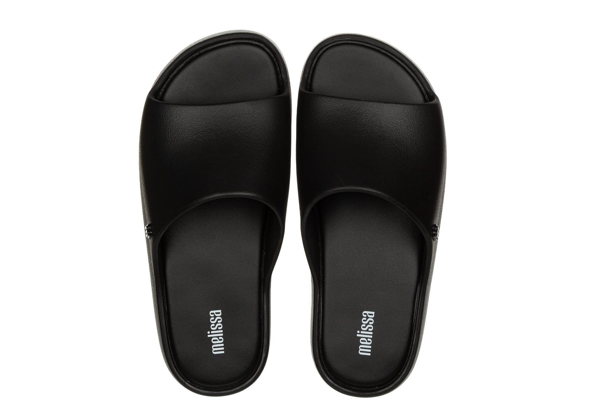 Klapki brazylijskiej marki Melissa w kolorze czarnym.