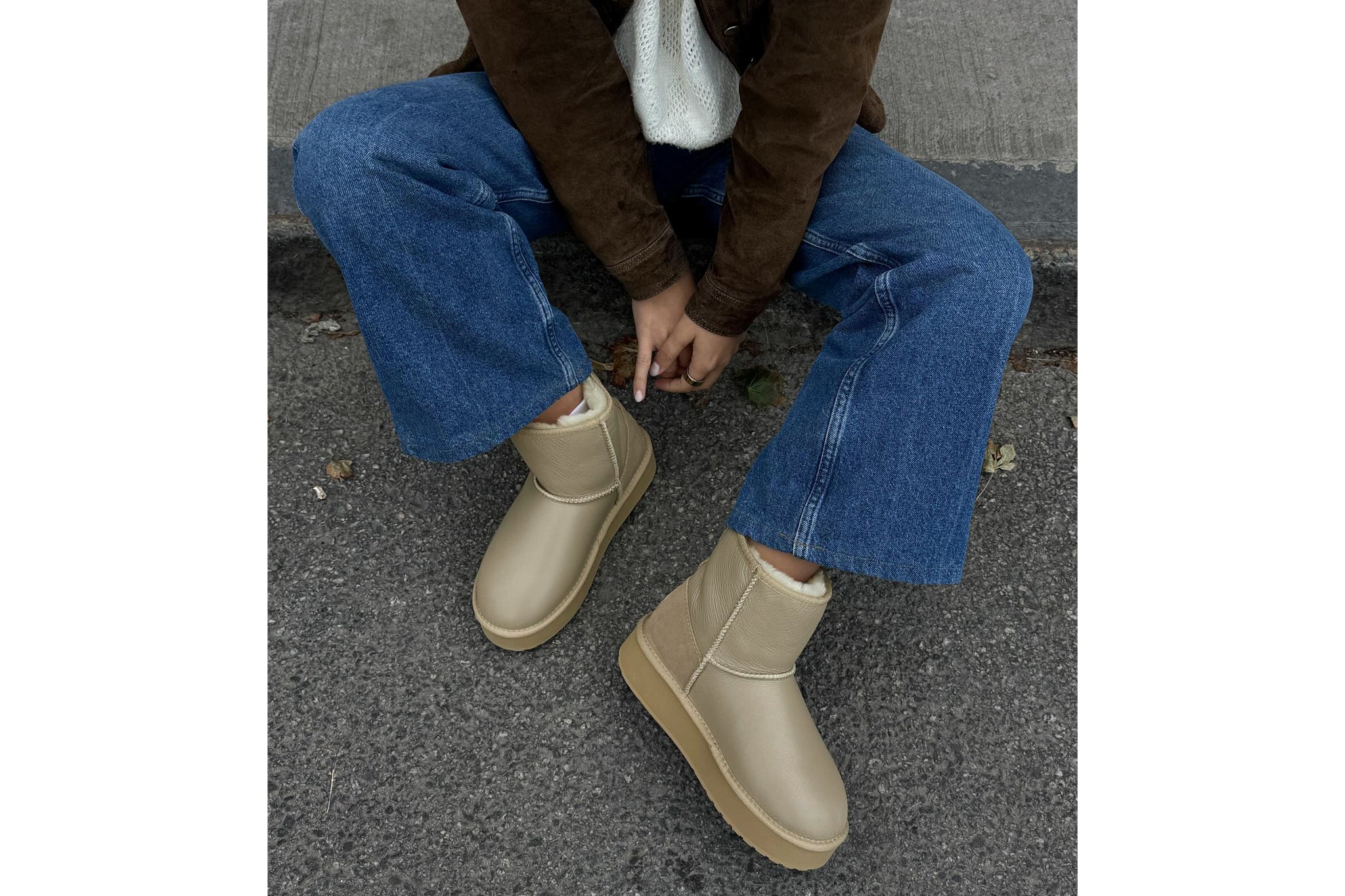 Profilowana podeszwa platformowa. Mocny bieżnik, buty zapewniają niezawodną przyczepność. Wkładka z australijskiej skóry owczej odprowadzającej wilgoć i regulującej temperaturę. Dzięki ich miękkości i przytulności będziesz chciała je nosić przez cały dzień.
