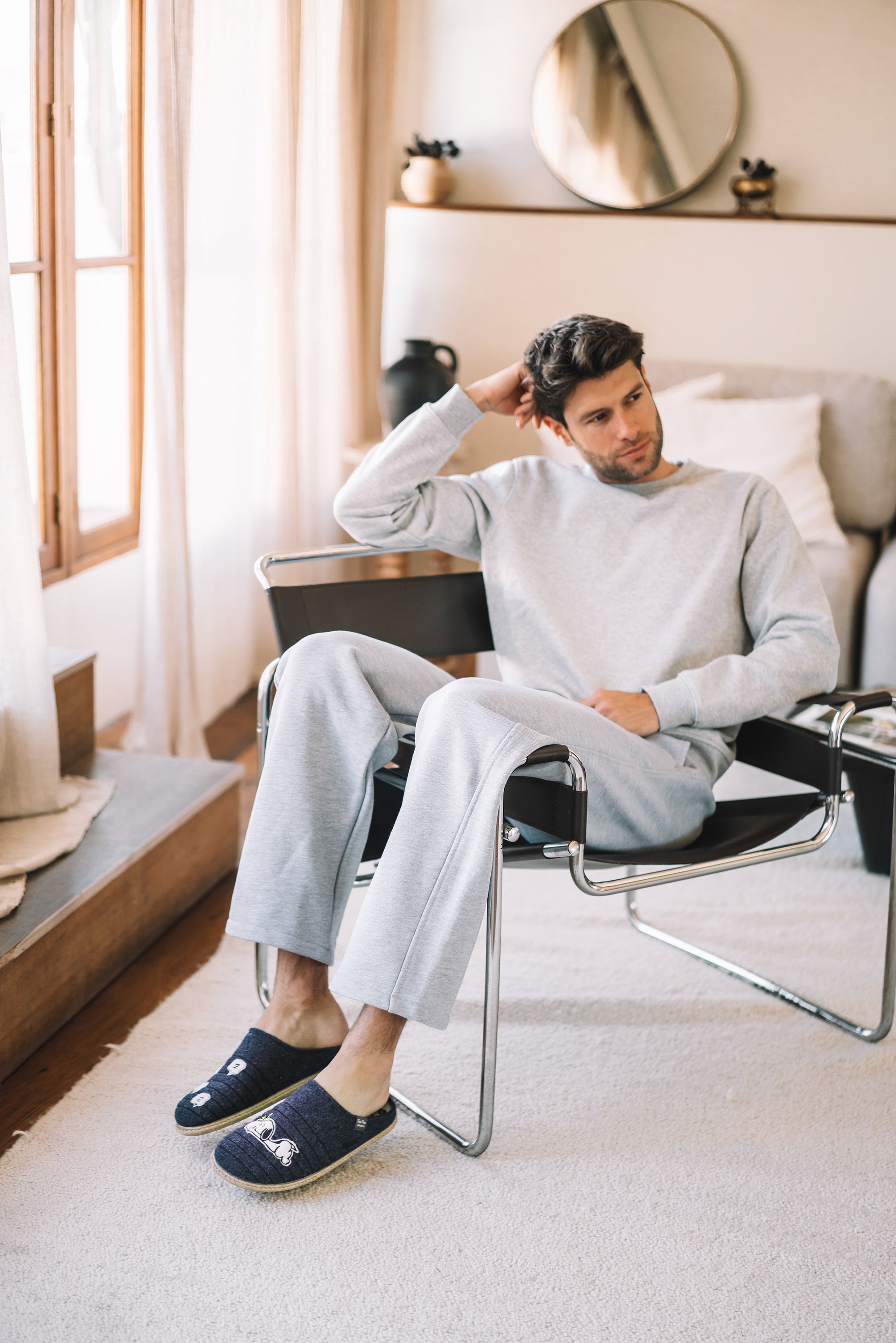 Męskie kapcie hiszpańskiej marki Toni Pons w kolorze granatowym z kolekcji Snoopy.