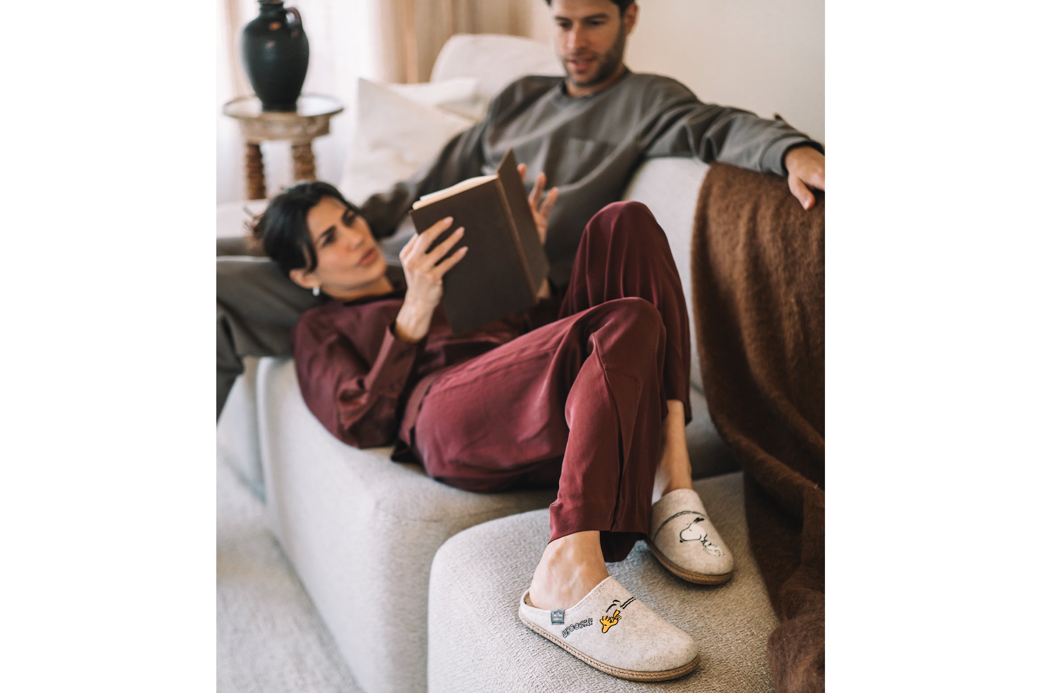 Kapcie hiszpańskiej marki Toni Pons w kolorze ecru z kolekcji Snoopy.