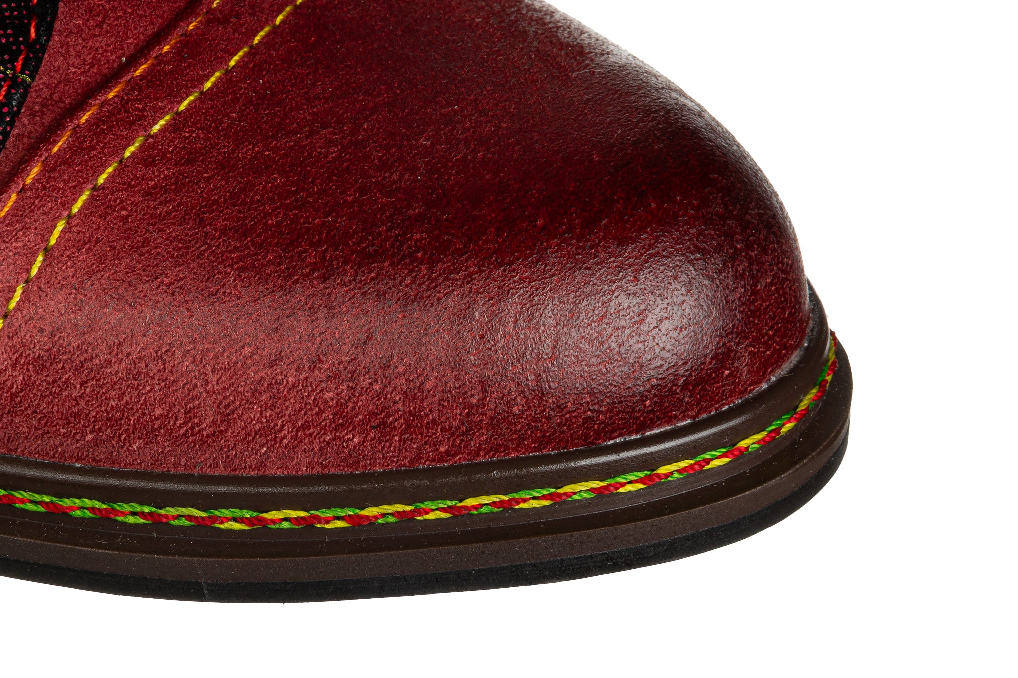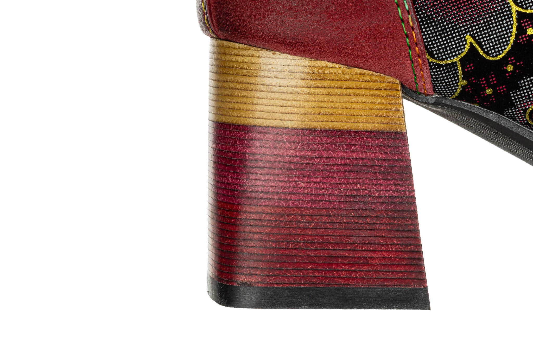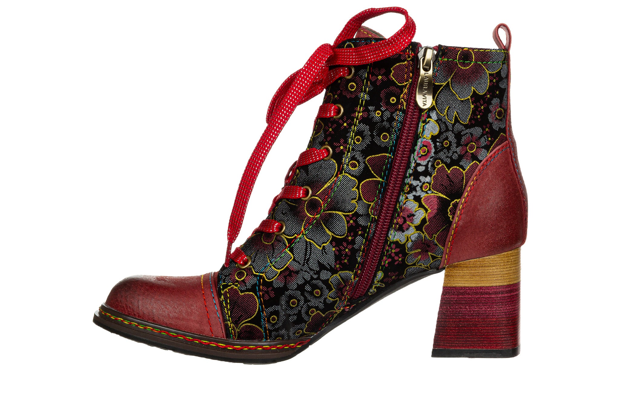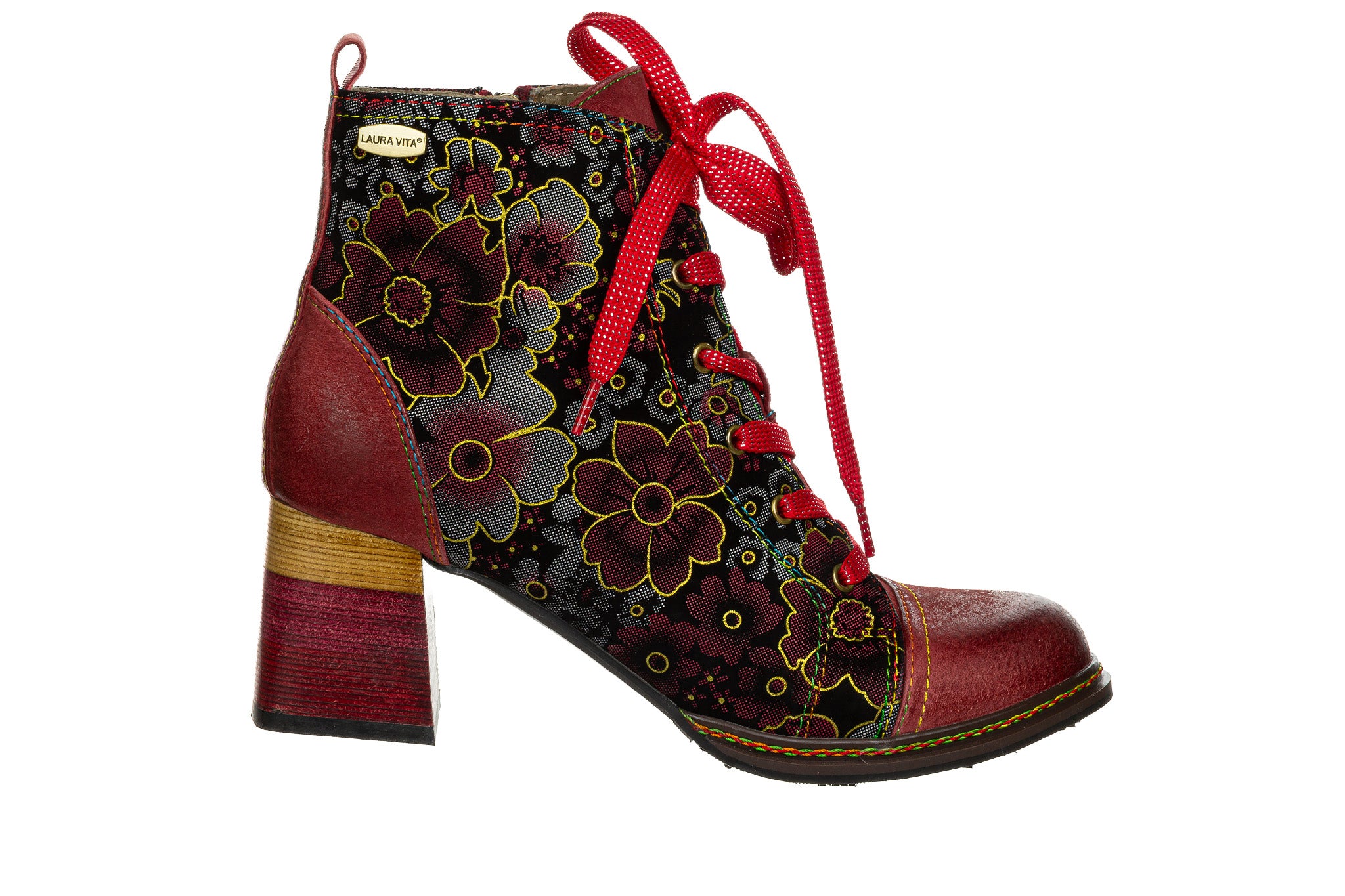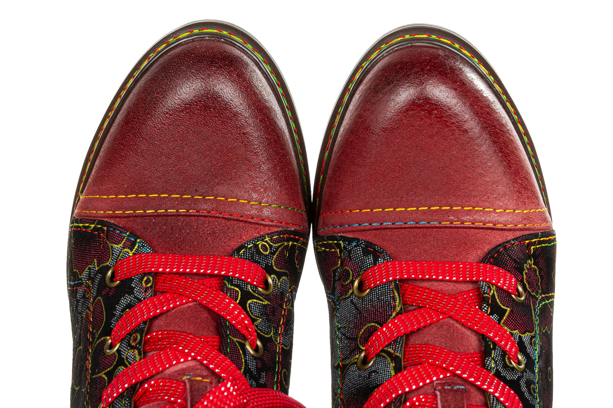Trzewiki francuskiej marki Laura Vita w kolorze intensywnej rubinowej czerwienie w kwiatowy wzór.