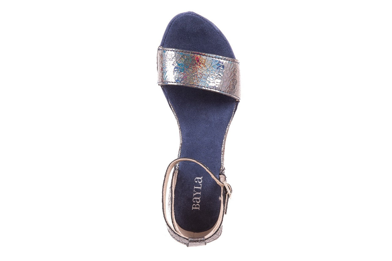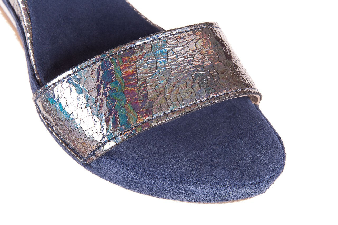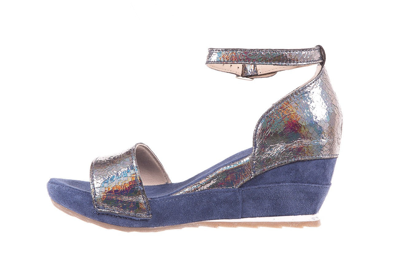 Buty wykonane z naturalnego zamszu w kolorze granatowym. Paski butów wykonane są ze skóry metalicznej w kolorze niklu (z efektem popękanej skóry).