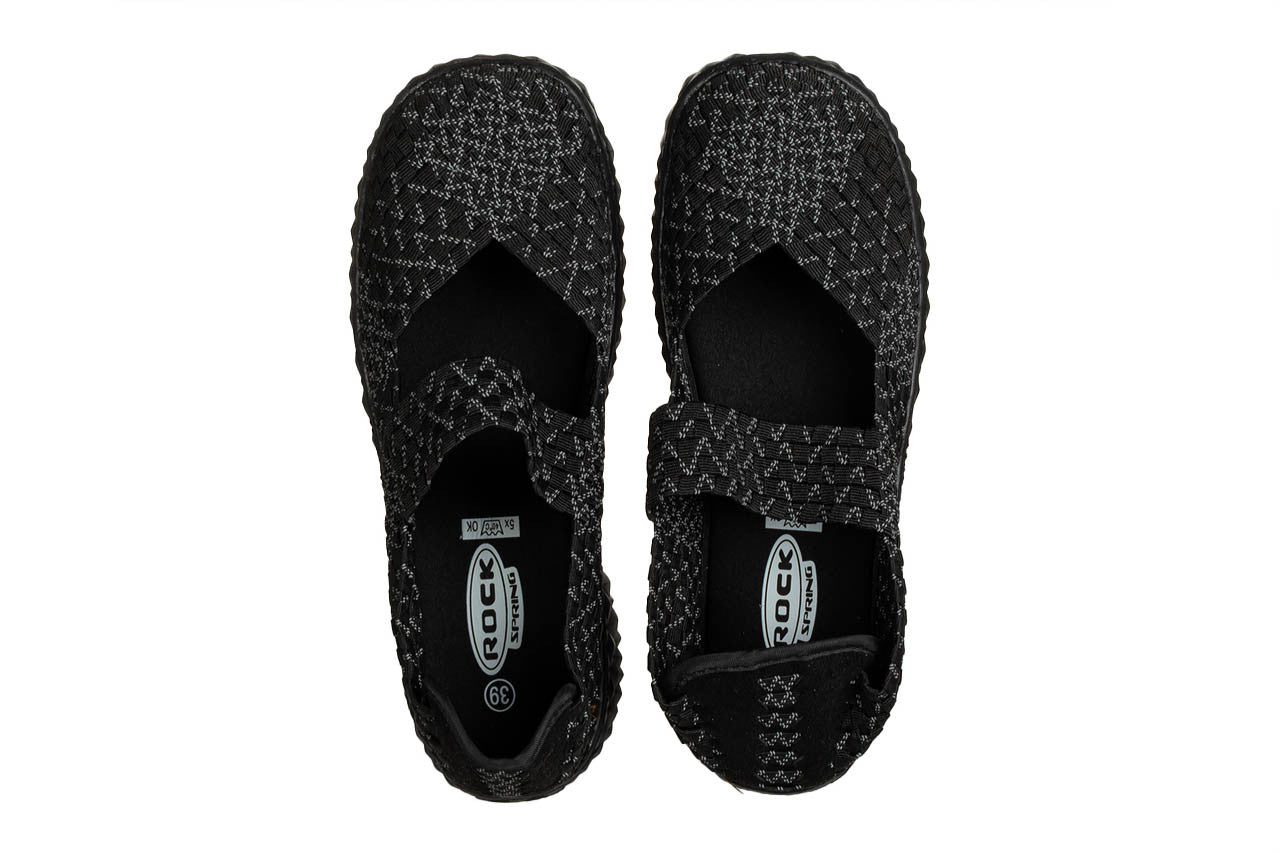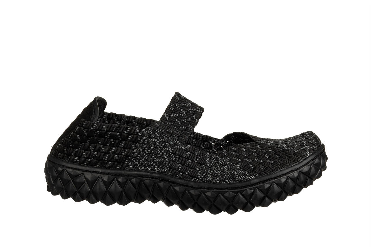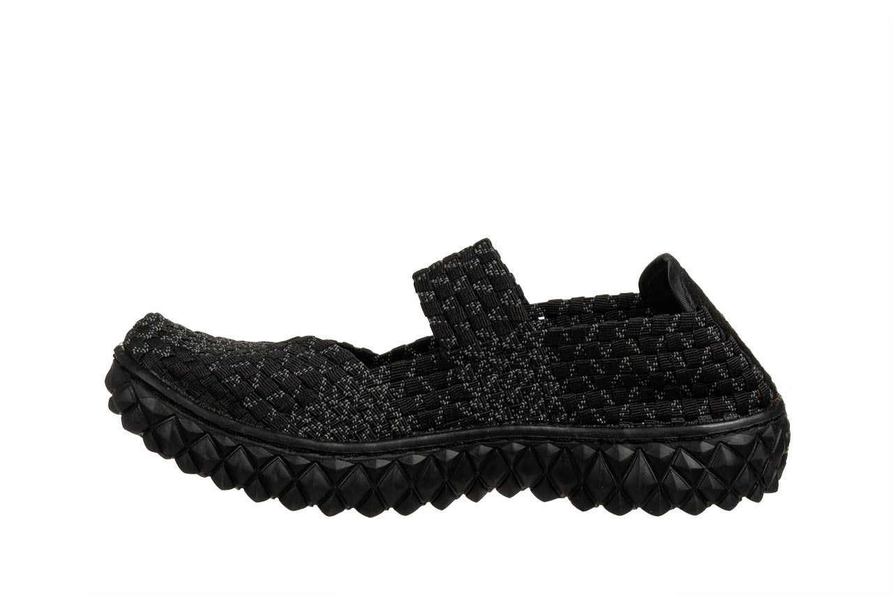 Plecione cholewki z wyjątkowo elastycznych gumek w kolorze czarnym idealnie dopasowują się do indywidualnego kształtu (tęgości) każdej stopy. Miękka, piankowa wkładka z profilowaniem przy podbiciu i pod piętą oraz lekkie, antypoślizgowe podeszwy sprawiają, że buty są bardzo wygodne. Ponadto zapiętek z miłego w dotyku zamszu niweluje możliwość otarć pięty. Przez środek biegnie gruby pleciony pasek utrzymujący stopę w miejscu. Dodatkowym atutem buta jest możliwość prania w temperaturze 40 stopni.