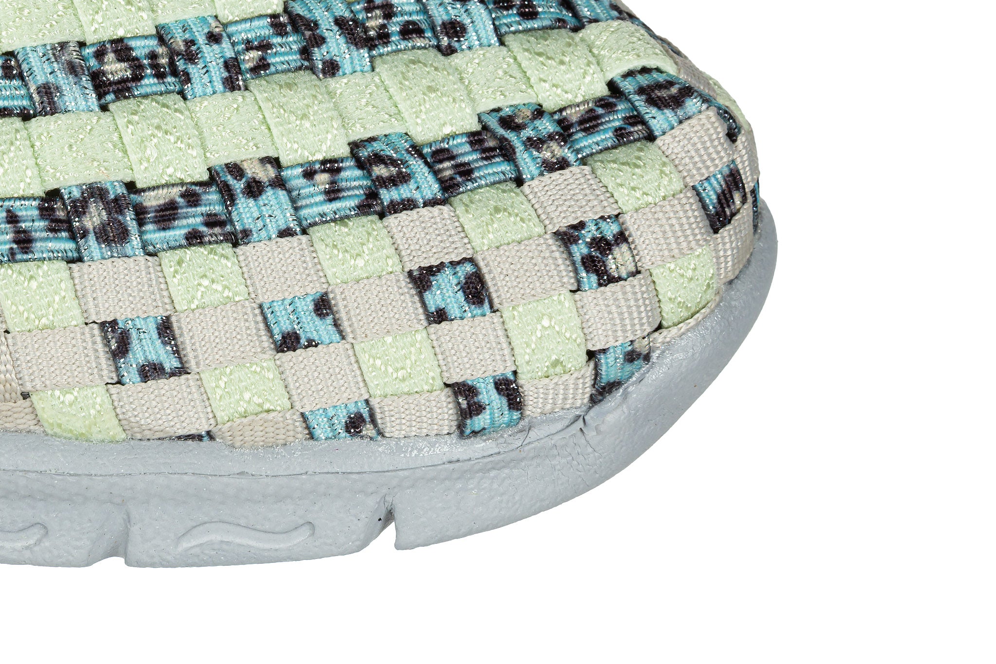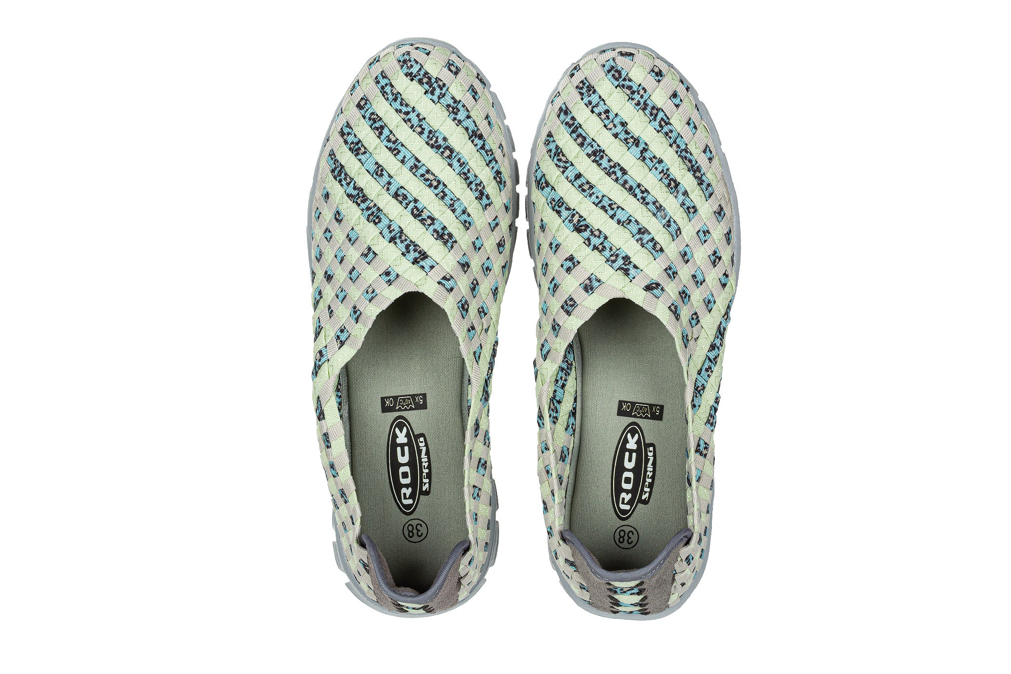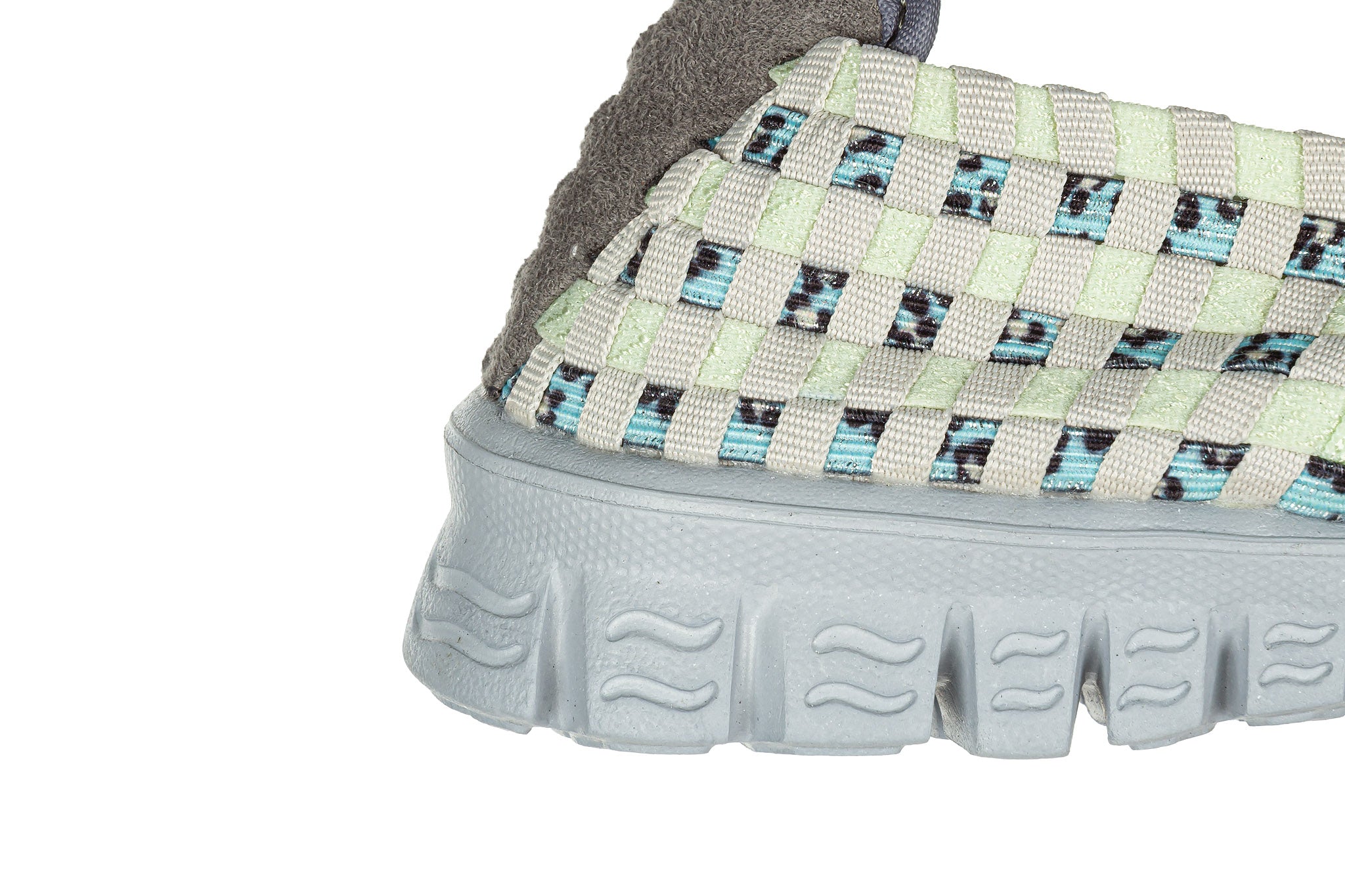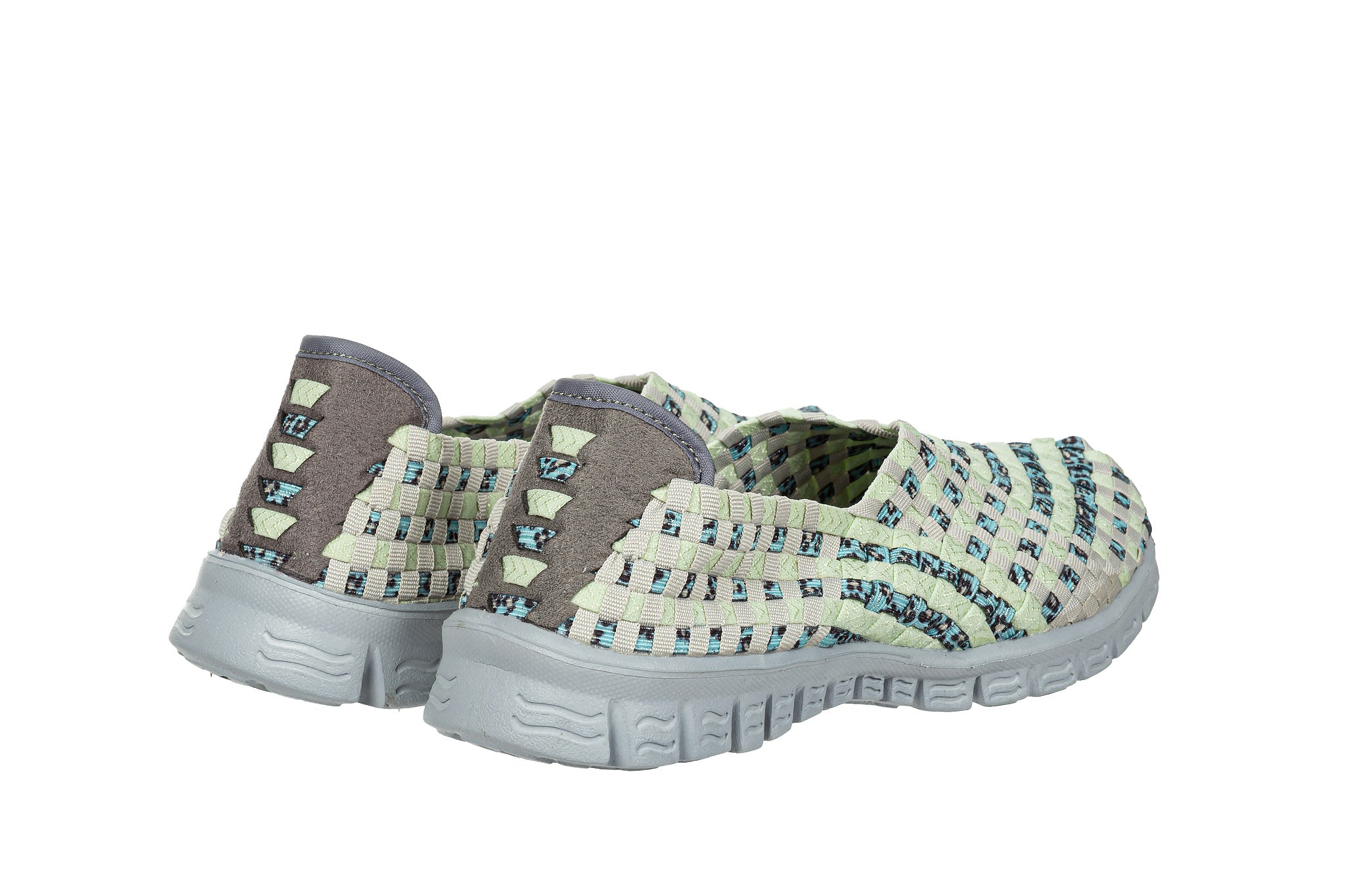 Plecione cholewki z wyjątkowo elastycznych gumek idealnie dopasowują się do indywidualnego kształtu (tęgości) każdej stopy. Miękka, piankowa wkładka oraz lekkie, antypoślizgowe podeszwy sprawiają, że buty są bardzo wygodne. Zapiętek z miłego w dotyku zamszu niweluje możliwość otarć pięty. Przez środek biegnie gruby pleciony pasek utrzymujący stopę w miejscu. Model jest lekki, co bardzo dobrze wpływa na komfort użytkowania. Dodatkowym atutem buta jest możliwość prania w temperaturze 40 stopni.
