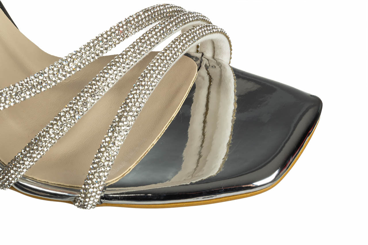 Buty są lekkie, wygodne i pięknie prezentują się na nodze. Srebrny kolor paseczków w połączeniu z delikatnymi, srebrnymi kamyczkami nadaje im wyjątkowego, kobiecego charakteru i przyciąga wzrok. Zapięcie na klamerkę pozwala dopasować buty do szerokości każdej stopy. Paski od wewnętrzej strony obite są miękkim w dotyku materiałem. Trzy paski przy palcach dobrze trzymają stopę. Sandałki z kwadratowym czubkiem to nieodłączna część modnej garderoby w nadchodzącym sezonie.